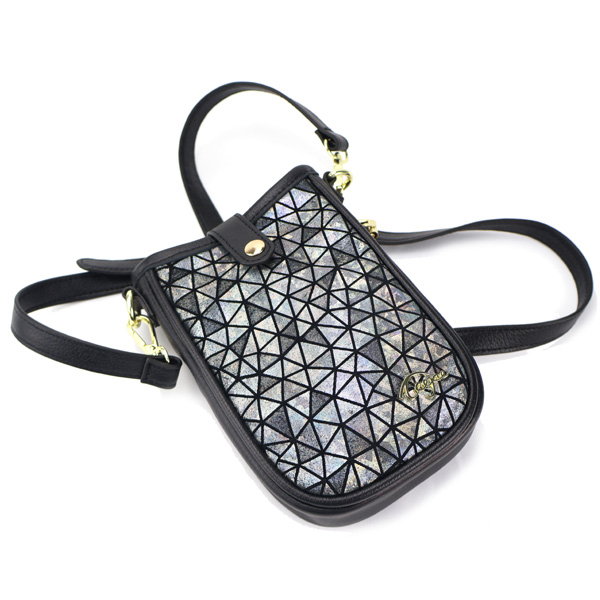 Phone crossbody made of bright high-end cowhide.