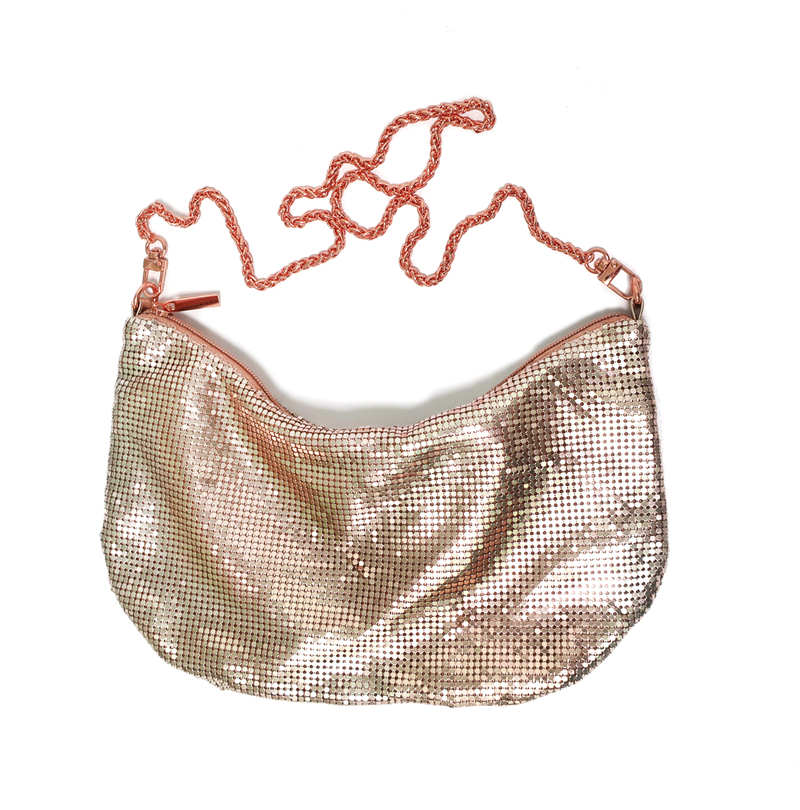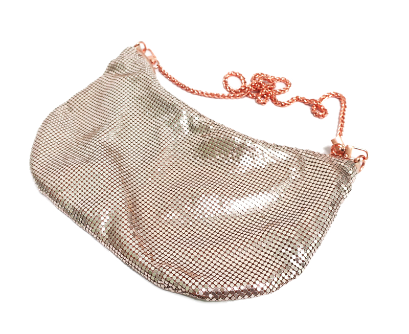 Rose gold Chainmail shoulder bag. Carrying it to a party will get you all the attention.