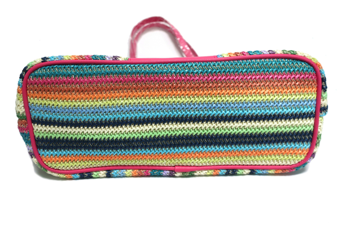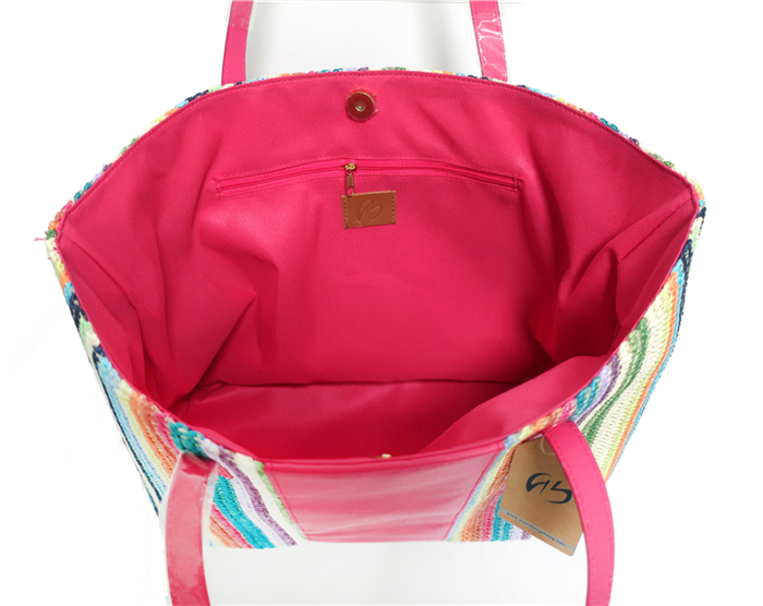 Colorful PP straw fabric with superior PU. A distinctive straw tote.