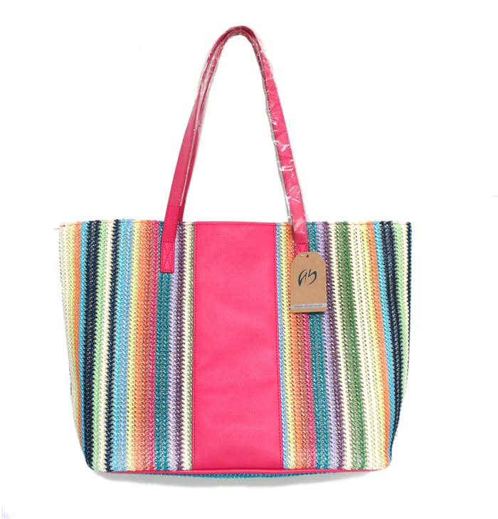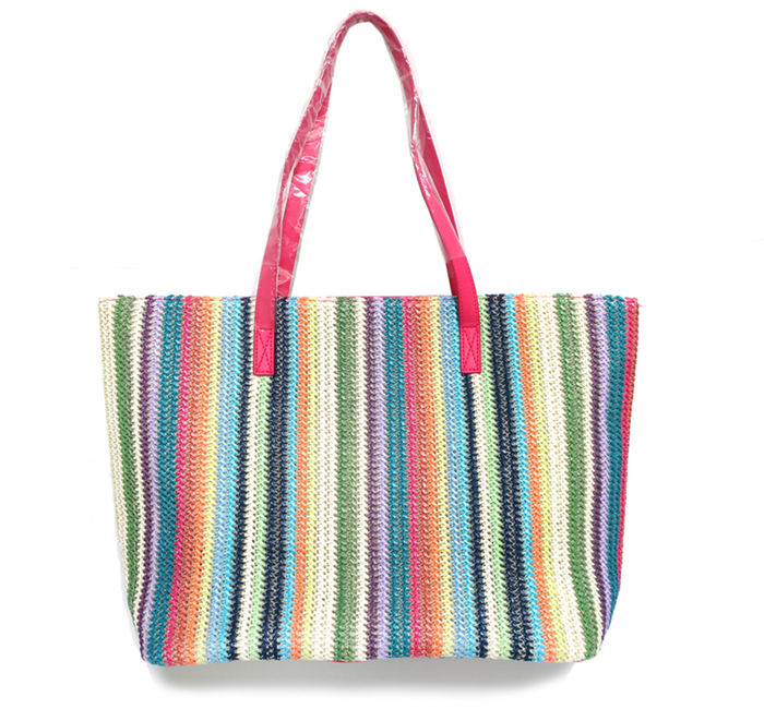 Colorful PP straw fabric with superior PU. A distinctive straw tote.